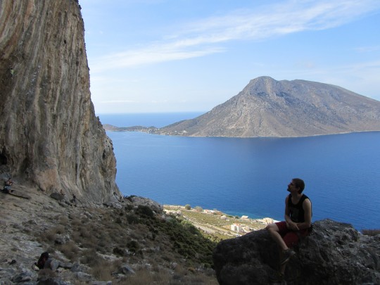 Yesterday Eddie and Pat went greek-alpine style and climbed”big-rig” multi-pitch (150m) feature on the island of Telendos which has been the sleek backdrop of most of our snapshots during the trip. I was told that they handjammed their way to victory on some stellar “tufa-cracks”… they were psyched!! hopefully PG has some sick footage on his trusty “Gopro” camera that he takes everywhere.