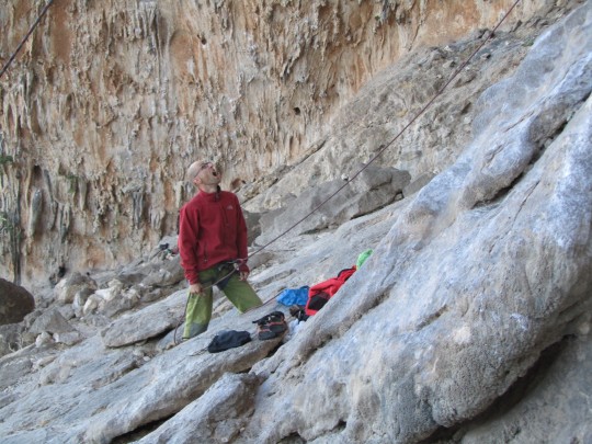 So… on to the climbing…guys, its so UNreal. Its like watching a film in 3D for the first time. It just comes out and grabs you and if you don’t cowboy up and wrestle back you will be going for a ride! We are so psyched. AND….Its “catch your breath” beautiful here. Our crib is totally deLUX. Thanks to Les the Mess for her mad beta. We are renting from Adonis and Papi Galouzi… who don’t speak a lick of english, but are two of the most amazing people i have ever met. I saw Adonis out on the porch with some binoculars spying on people, and it reminded me of you, Dad. Maybe its just a euro thing, and you cant help it, im not sure.