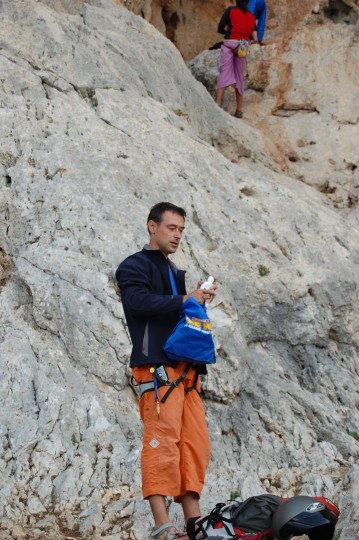 Unfortunately, weather.com didn’t get the memo that we had routes to climb, and projjys to send, because the last week we spent most of the week trying to schedule our climbing around the rain. Alas, the sun shone upon us for our last two days where we first raced up to the Grande Grotta to get or final fix on some of the big rigs. I was feeling a bit under the weather so I decided that the physically exhausting 45 meter cave climbing would be a bad idea, so I relegated myself to belay duty while eddie ventured back up “Fun de Chichunne” for round three! After what might have been the longest redpoint belay I have endured, Eddie clipped the chains of “Fun de Chichunne”, and can NEVER make fun of me for climbing slow AGAIN! I should give Ed some mega-props for making quick work of this classic… it packs some hard boulder problems in between the gut-buster tufa ‘rests’, and is a super relentless, ‘boogie til you puke’ style limestone tufa rig. BLAM!