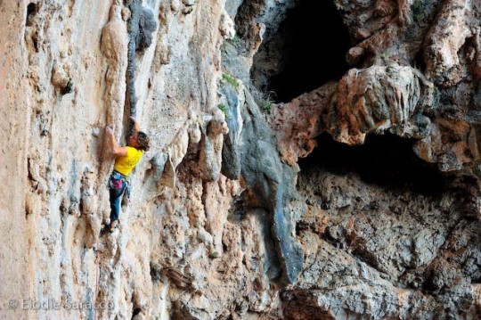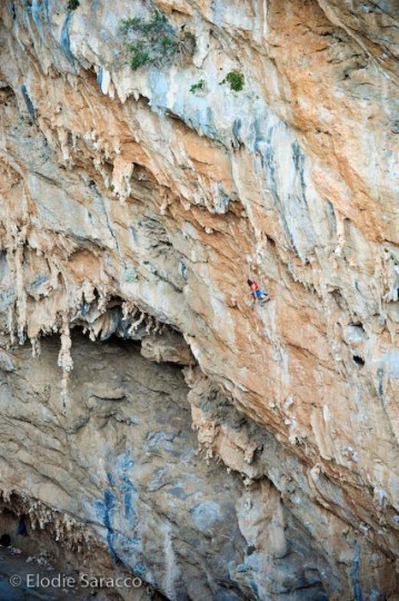 In honor of the goats, I decided to hang the quicks on a beautiful 7b called: “Mort Aux Chevres” which means ‘Death to the Goats’. Eddie thinks that this is a fitting name for one of the showpiece routes here in the psycho sikati because goats occasionally botch the 5.10 down-climb, and pizza their way to the bottom. Elodie took some beautiful pictures of this route.