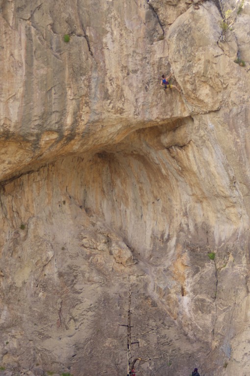 After spending a few days at the Cathedral, Eddie and I were psyched to check out a new crag called Sunset Alley. I don’t know a lot about the history of Sunset Alley… or about the developers, though I believe it will be available when a new guide is published for the Utah Hills. I do know that Bill Ohran and Misty Murphy have been major contributors in the development of this amazing area, and for that we are super appreciative. They have donated tons of time, money, and effort (like all developers) to make this place such a great area to climb. Our trip wouldn’t have been nearly as enjoyable without this new area to climb in. The Cathedral is GREAT… but this place truly is special. Thanks Bill and Misty and all others! One of the most stunning lines in the main cave area is a rad route with a rad name: Fun Pig. Here are some photos of us climbing this classic line.